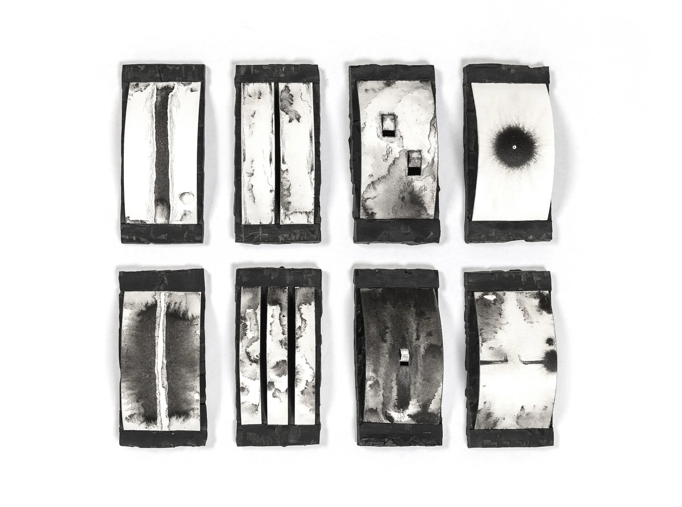 Mousetraps, 2016 Ink on paper & polymer clay, 13 x 6 x 2.5 cm each